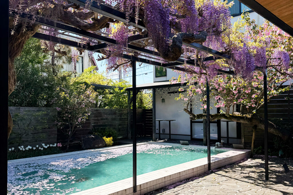 下の写真は私がトレランのあとによく立ち寄る、「スターバックス 鎌倉御成町店」。 ちょうど今、藤棚が満開を迎えていて、その美しさは圧巻です。