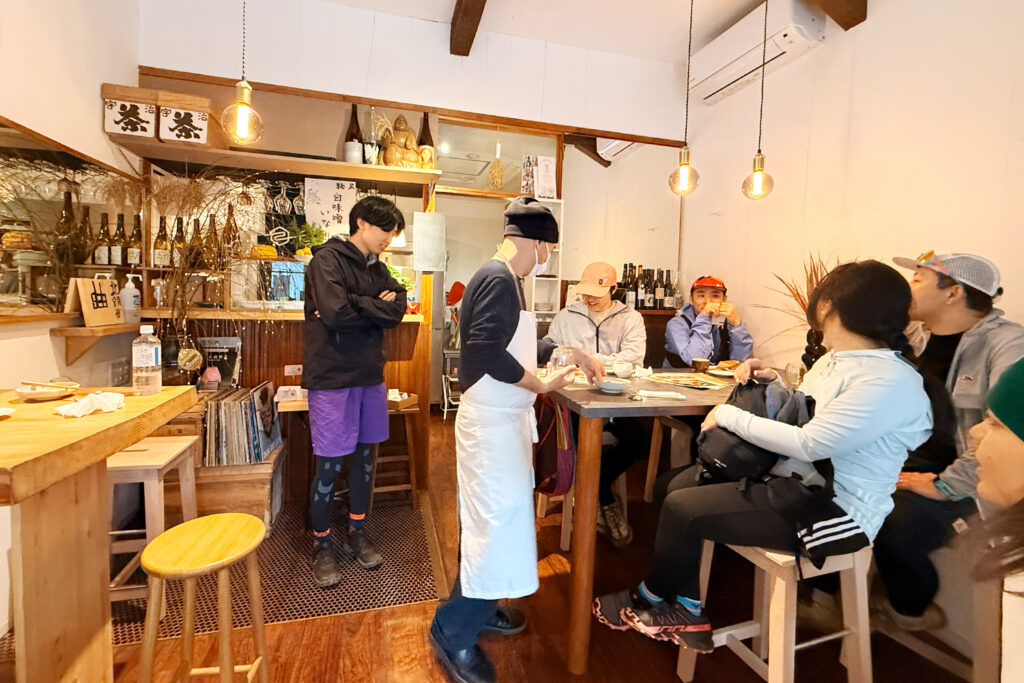 ただ厳しいだけの練習ではありません。 合間に「石かわ珈琲」などのローカル店に立ち寄って、しっかり楽しむのがスロートレイル流。