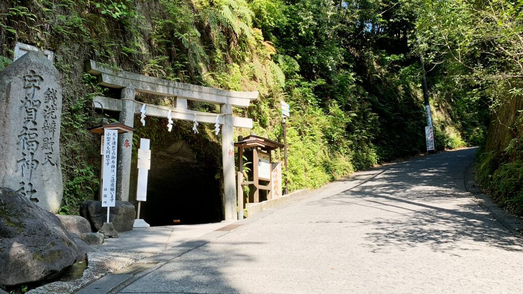 山道を抜けると現れるのが、金運スポットとして有名な「銭洗弁財天 宇賀福神社」。 岩肌をくり抜いたトンネルを抜けるアプローチは、何度行ってもワクワクします。