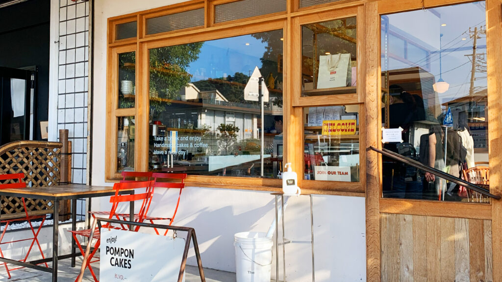 今回のルート、最大のハイライトと言っても過言ではないのがここ。 鎌倉の観光地から離れた住宅街・梶原に佇むお洒落なスイーツ店、「POMPON CAKES(ポンポンケークス)」です。