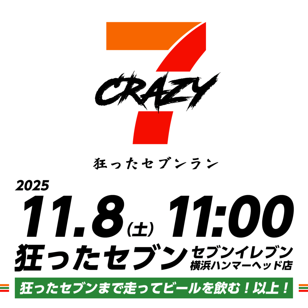 そんな「CRAZY7」ですが、11月8日(土) 11時集合の「CRAZY7」を開催!お時間ある方是非お越しください。詳細は私の個人ブログをご覧ください。