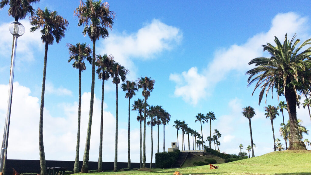 しかし、森を抜け、住宅街を一本超えた瞬間…… 視界いっぱいに、風に揺れるパームツリーとヨットハーバーが飛び込んできます。