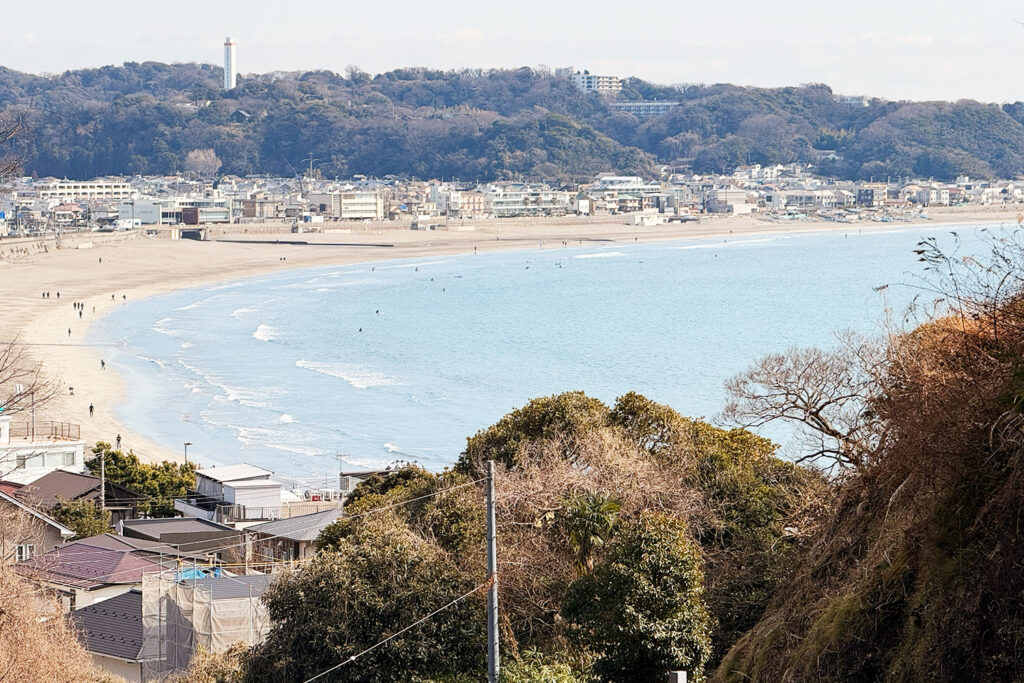 パッと視界が開け、キラキラ輝く由比ヶ浜が見えた瞬間の開放感は、何度訪れても感動します。 最後は波音を聞きながらビーチウォークを楽しみ、鎌倉駅へ。
