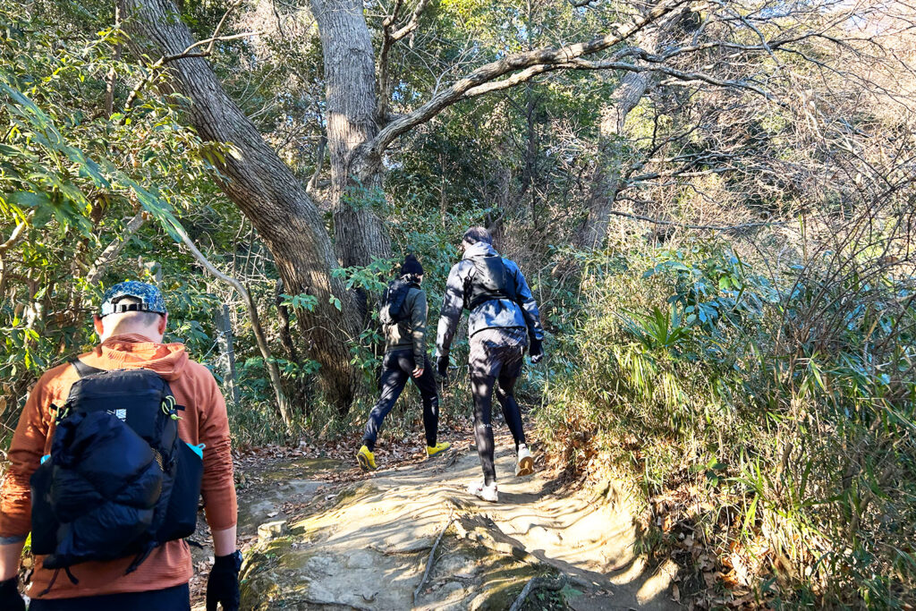 「今日は少し寒いですね〜」なんて言いながらスタートしましたが、山に入ると木漏れ日が差し込み、すぐに体が温まってきました。