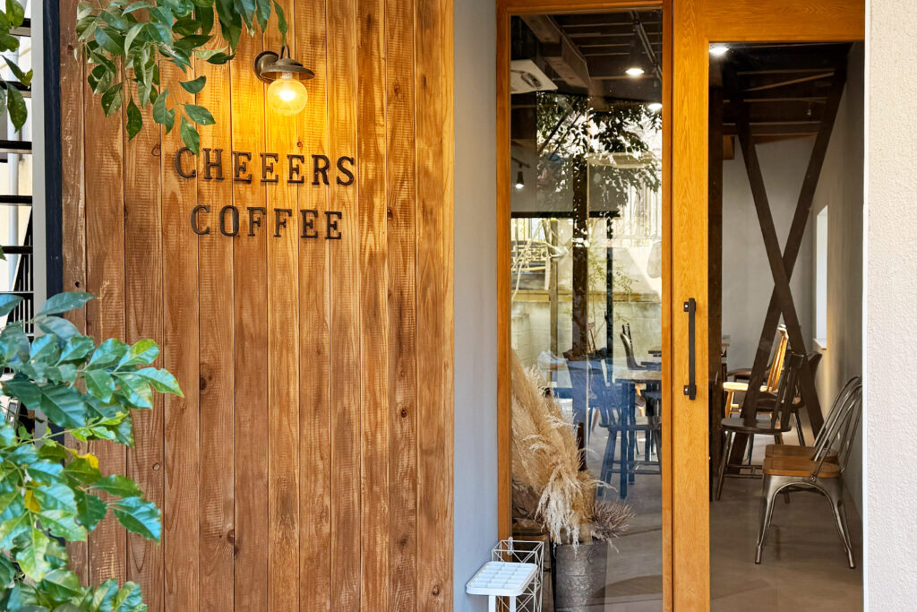 少し動いて小腹も空いてきたところで、お楽しみのカフェ休憩へ。 今回は、大通りの喧騒から離れた路地裏にある隠れ家カフェ「CHEEERS COFFEE(チアーズコーヒー)」さんにお邪魔しました。