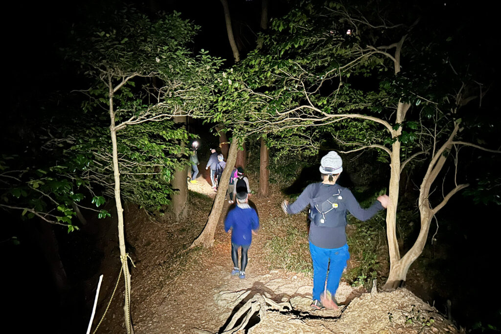 一人ではハードルが高い夜の山歩きも、ガイドと仲間がいれば最高の遊び場になります。