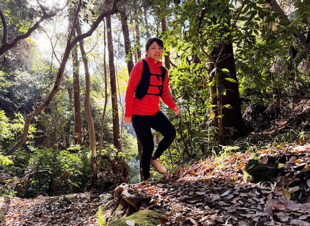 また、トレイルランニングでは「登り坂は歩く」のが一般的。「走らなきゃ」と追い込む必要はありません。早歩きで坂を登るだけでも、お尻や太ももの大きな筋肉を使うので、代謝アップには十分効果的です。