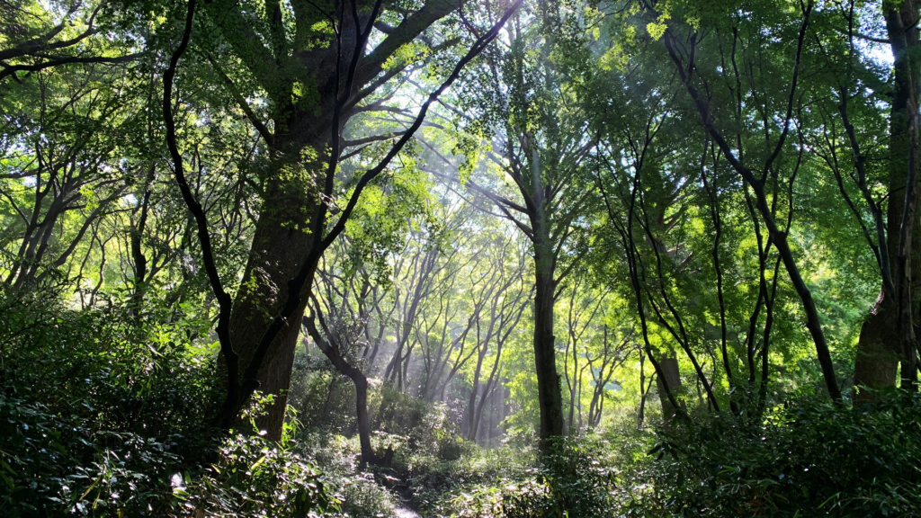 観光客で賑わう街の喧騒を離れ、静かな森へ。 聞こえるのは、風の音と、自分の呼吸だけ。